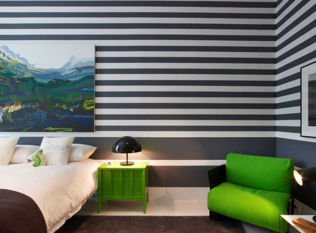 Оптимальный вариант фона для картины – однотонная стена или обои в редкую полоску