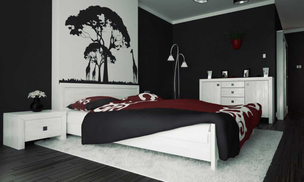 Можно в спальне использовать черный? Споры психологами ведутся до сего времени. С одной стороны он слишком тяжелый, депрессивный. Но если посмотреть под другим углом, то какой цвет более респектабельный, чем этот? Дизайнеры внимательно выслушали доводы всех участников спора и выдвинули свой вердикт: черному быть. В малых декоративных количествах. Одна стена. Не больше. И обязательно с аксессуарами и дополнениями в виде декора.