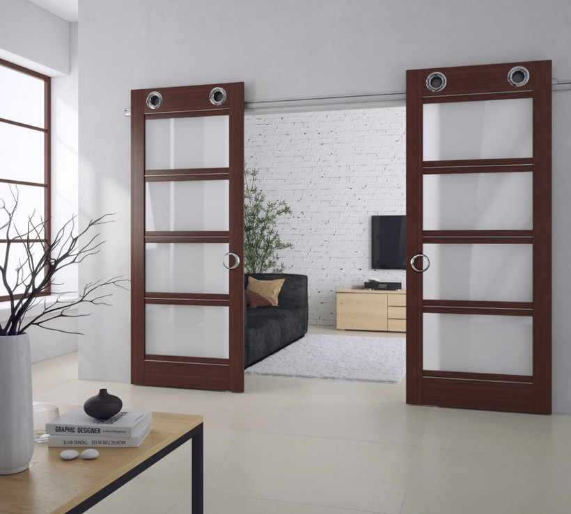 Количество поперечных планок – не менее 3-х. Между ними для достижения декоративного эффекта вставляются стеклянные или металлические элементы, что создает элегантный облик межкомнатной модели.