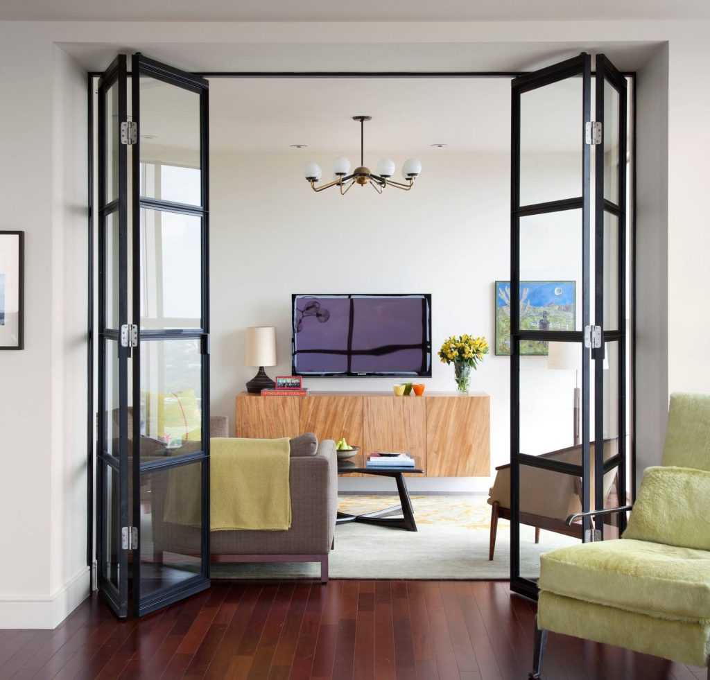Эксплуатационные свойства и варианты оформления складных межкомнатных дверей с фото в интерьере