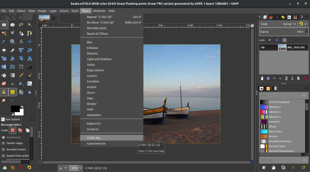 Запускаем GIMP 2.9. Открываем изображение. В меню фильтров выбираем G’MIC QT. Если у вас еще не установлен GIMP 2.9, то подробно об этом можно прочитать . Если будете следовать этой инструкции то получите самые свежию версию и редактора и плагина.