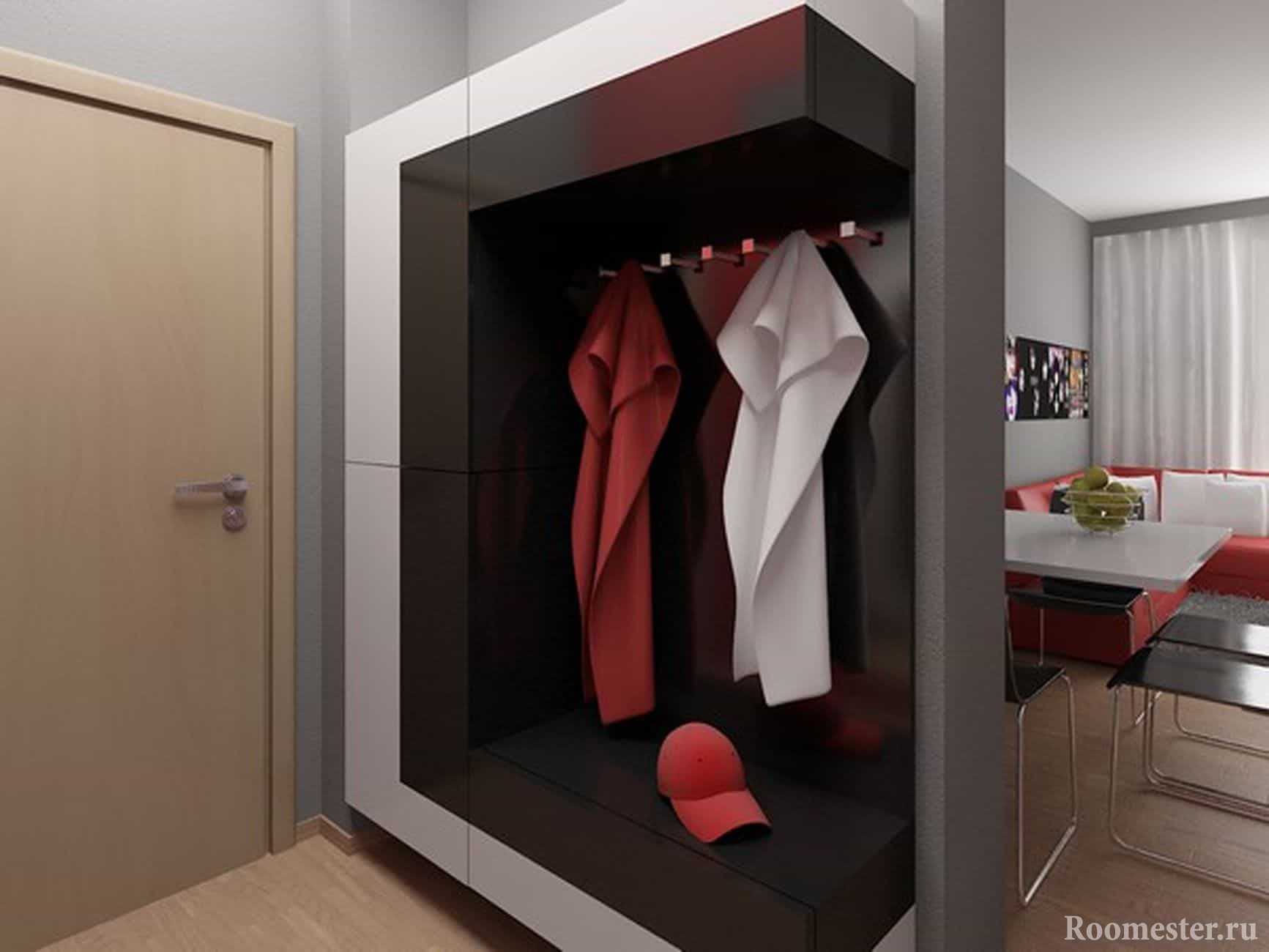 Сначала необходимо найти место для размещения вешалки. Хорошенько присмотритесь к помещению, найдите возможность поставит шкаф или просто вешалку, а под ней — обувницу с сиденьем.