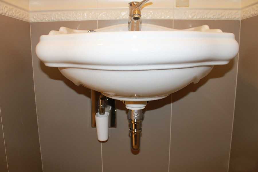 Перед тем, как раковина крепится к стене, нужно подключить слив — гидрозатвор из металла или пластика с гофрой или патрубками. Одним из лучших вариантов данного устройства является бутылочная модель, которая легко устанавливается и при образовании засора без особых усилий очищается.