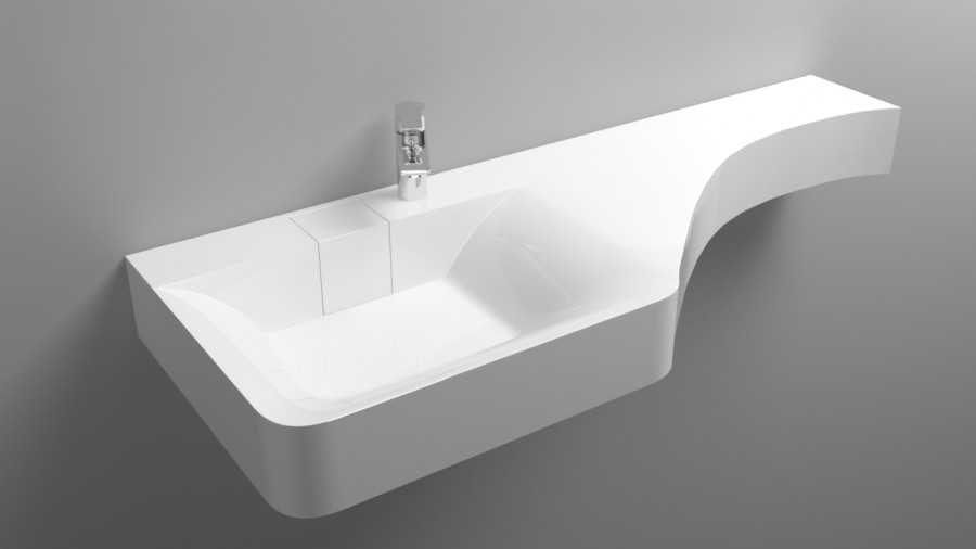 из искусственного камня. Более современные варианты раковин, обладают пластичностью, что позволяет выдерживать динамические усилия. Поверхность ремонтнопригодна, в случае повреждений есть возможность восстановить внешний вид до первоначального состояния. Вес больше, чем у керамических, требуют повышенной внимательности во время установки;