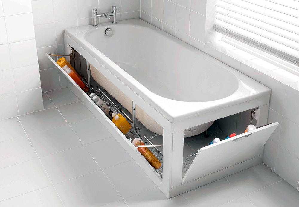 Использование пространства под ванной для хранения бытовой химии
