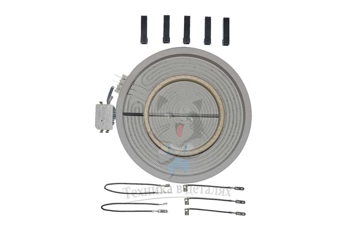 Простая конструкция конфорок, легко и быстро нагреваются от ТЭНа, расположенного под цераном. Замену конфорок произвести в домашних условия не составит никакого труда.