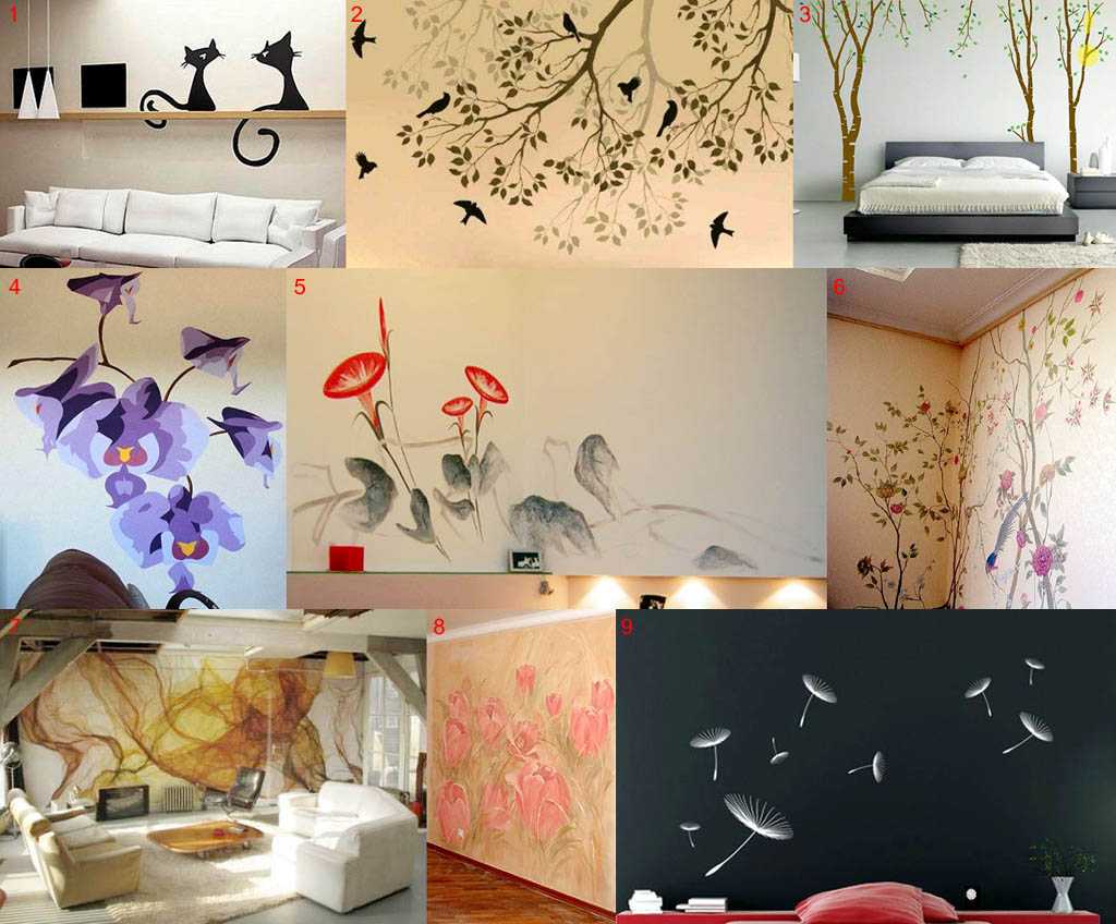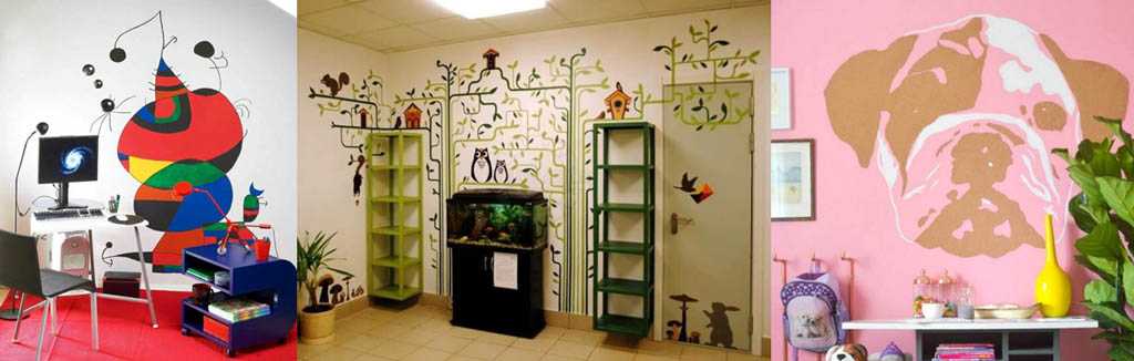 Ручную роспись стен лучше всего доверять профессионалам, но несложные рисунки вполне под силу и новичкам, если есть хотя бы небольшой навык рисования. Вот несколько примеров простых изображений.