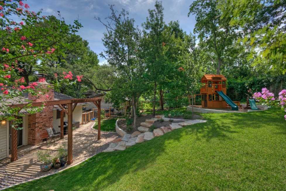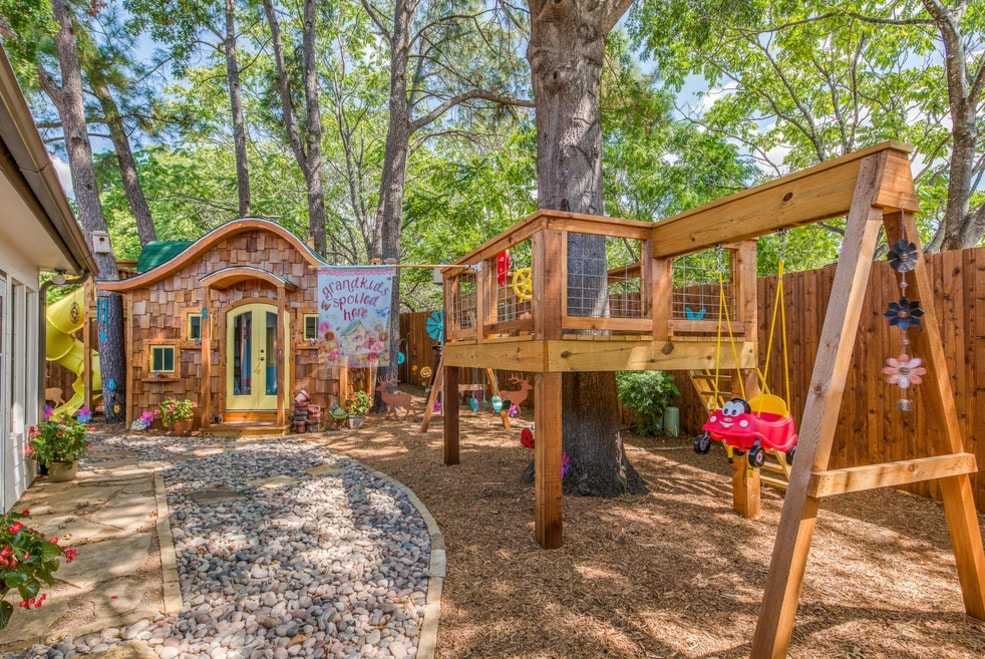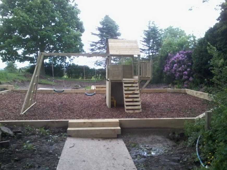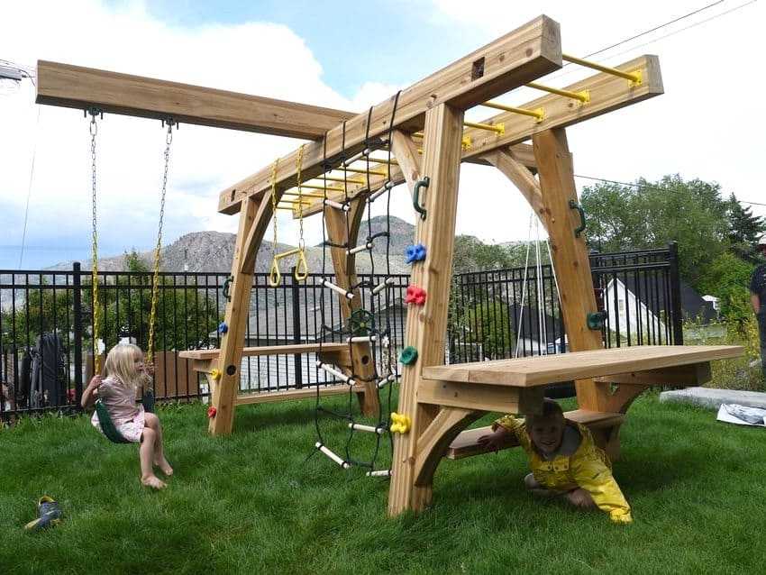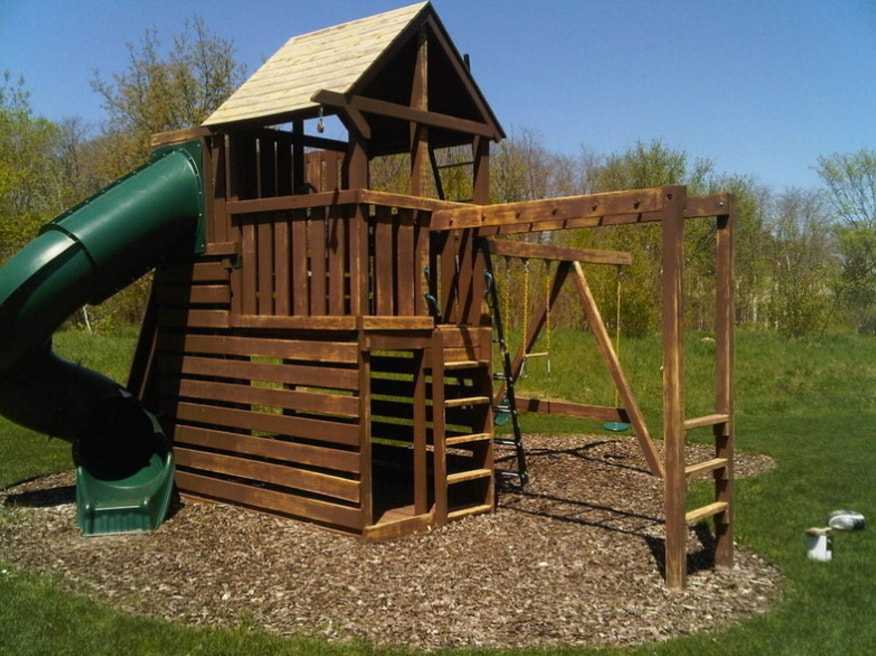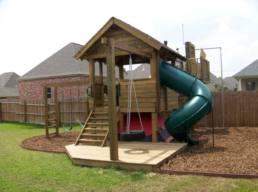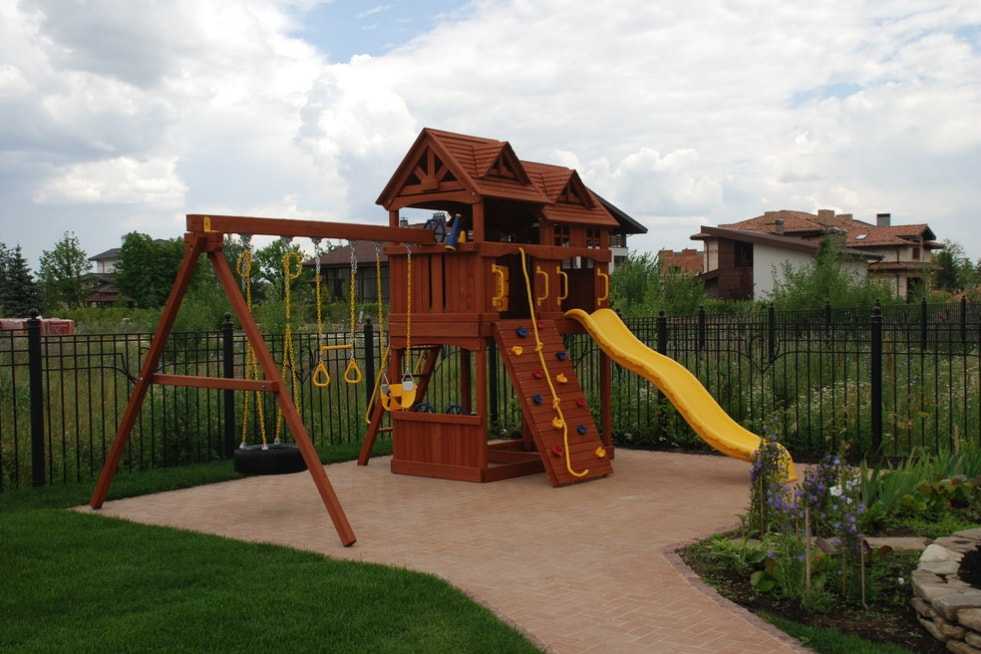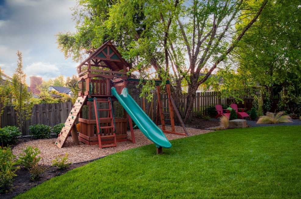 Придомовой участок должен ассоциироваться прежде всего с безопасной детской площадкой, на которой можно играть в разные игры. Ведь фантазия у малышей такая, что они в любом месте могут резвиться часами. В этом случае — безопасность сооружения, должна быть под тщательным контролем. Это касается прежде всего спортивных конструкций, на которых играют маленькие дети.