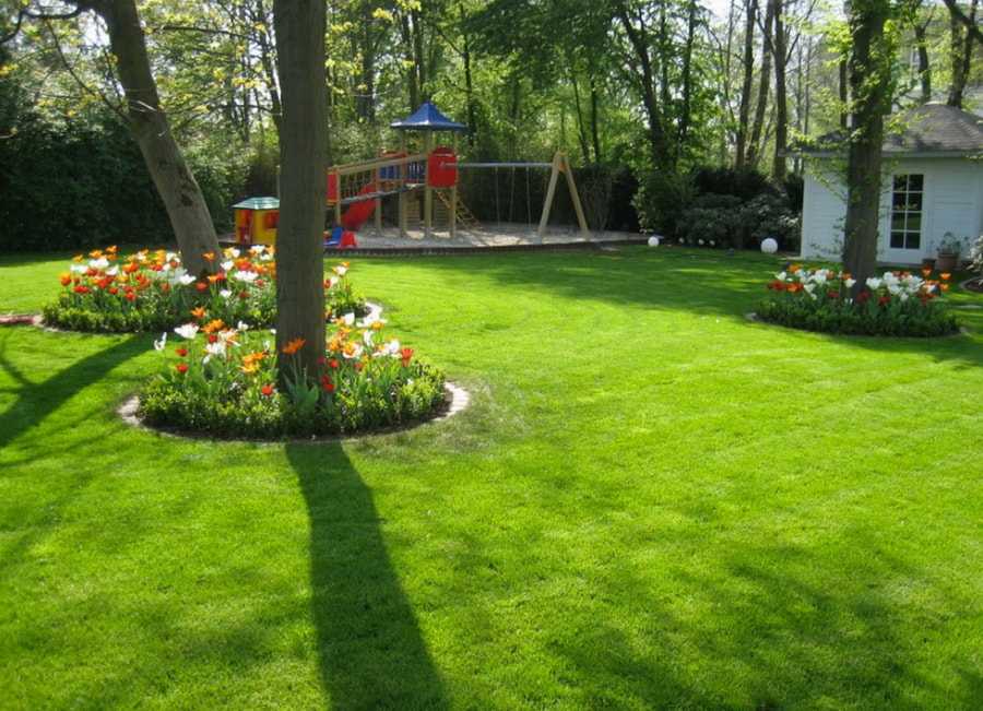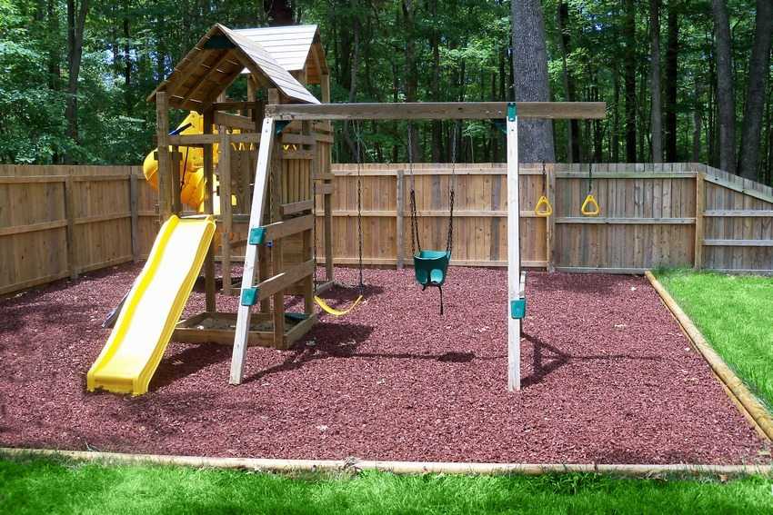 Что касается территории, то прежде, чем начинать создавать там детскую площадку, уберите все крупные камни и корни деревьев. Позаботьтесь о том, чтобы поверхность была ровной, а на ней не было сорняков и мусора. Ведь все это может навредить самым маленьким деткам. Если вы хотите обустраивать площадку в саду, то планируйте его так, чтобы дети могли спокойно играть, а не боятся затоптать клумбы или грядки.