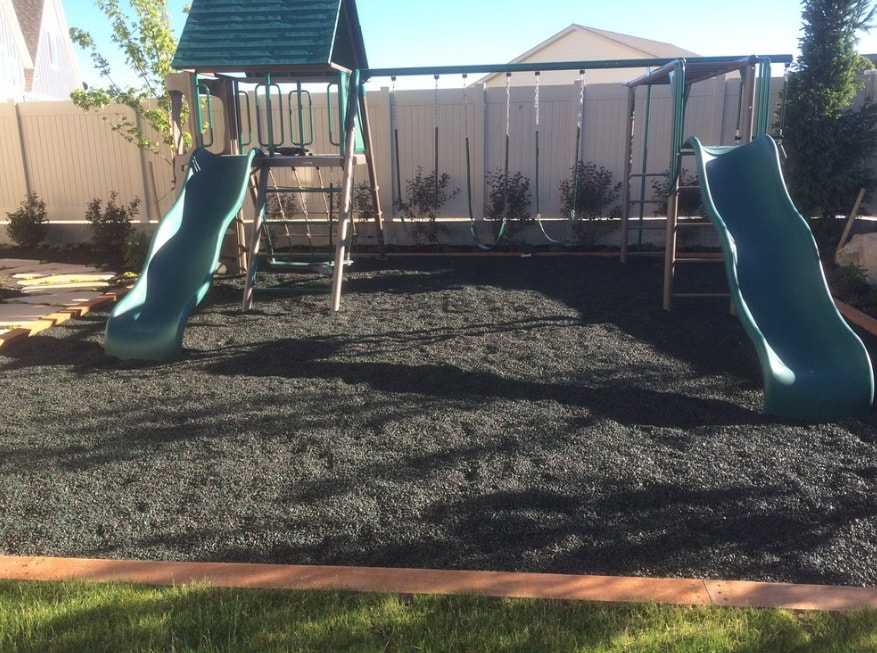 Слой резиновой крошки толщиной всего два или три сантиметра способен эффективно смягчать удары без каких-либо последствий для недостаточно крепкого организма ребенка. Самые опасные участки можно покрывать более толстым слоем резиновой крошки (до 10 см).