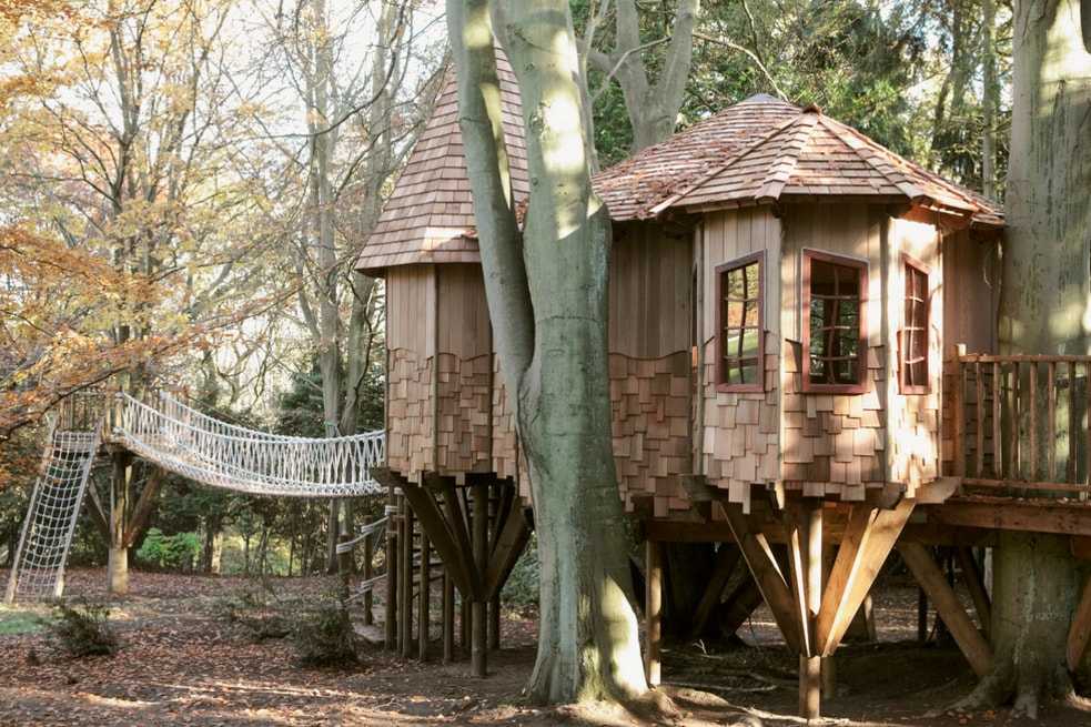 Используя эту конструкцию, можно соорудить игровой домик на дереве. Для домика на дереве потребуются опорные столбы, прочная деревянная площадка и мощное дерево.