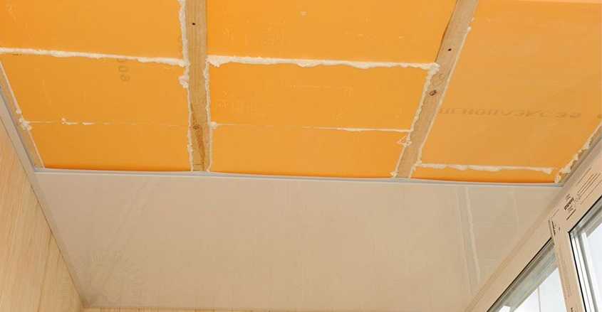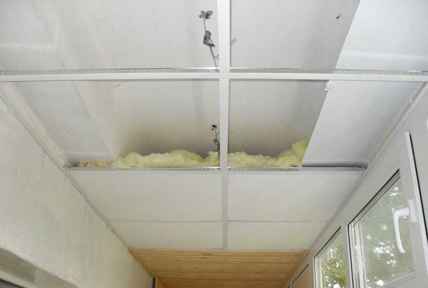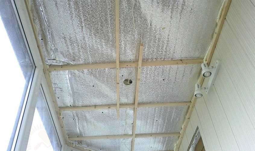 - создав деревянную обрешётку (подробнее в статье “как сделать обрешетку на балконе“), мастер заполняет каждую ячейку утеплителем;