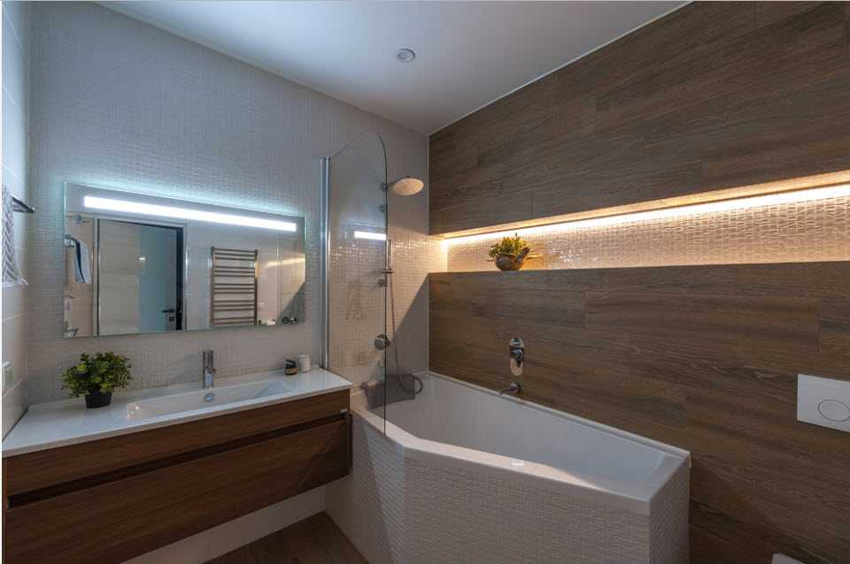 свет должен быть грамотно распределен, а светильники расположены во всех функциональных зонах ванной;