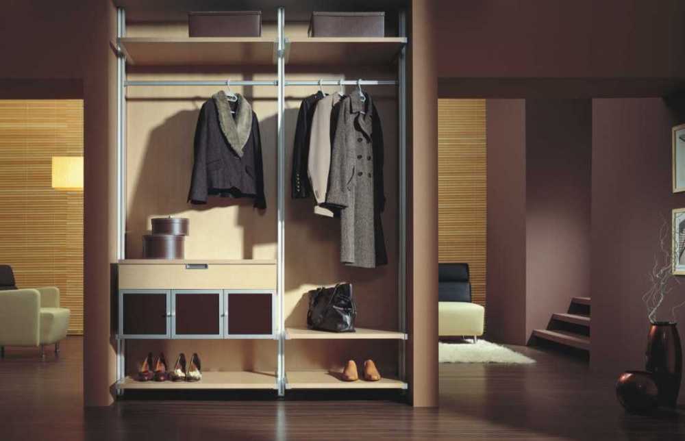 Полки для хранения головных уборов обычно совмещены с открытой вешалкой для повседневной одежды