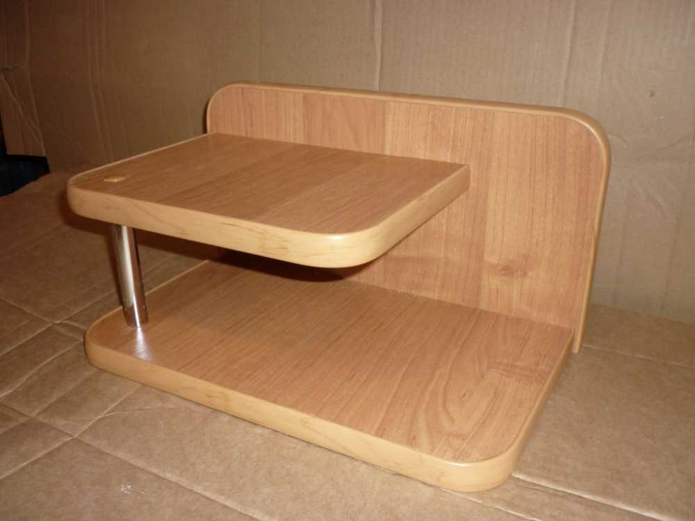 Сделать угловую телефонную полку можно своими руками, достаточно вырезать ее лобзиком из куска ДСП, а чтобы отбить полукруг нужного размера, просто возьмите подходящую тарелку. Лобзик при обработке древесно-стружечной плиты может оставлять сколы, маскировать их нужно наклеиваемой на торцы ПВХ-кромкой. Для приклеивания ее подойдет любой суперклей из магазина. Штробить стену не обязательно, если пропилить аккуратно обычной пилой пазы в полке для подключения проводов.