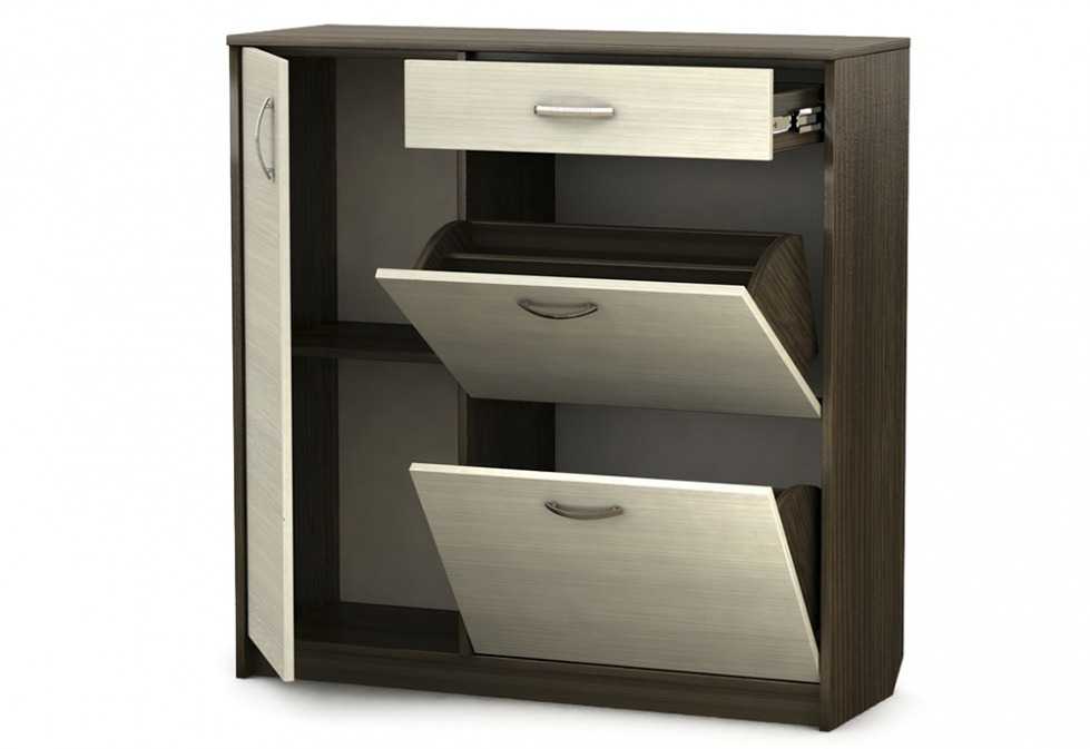 В откидной обувнице туфли находятся в вертикальном положении, а значит – занимают минимум места. Выдвижные конструкции очень удобны, но наиболее уместны для больших коридоров.