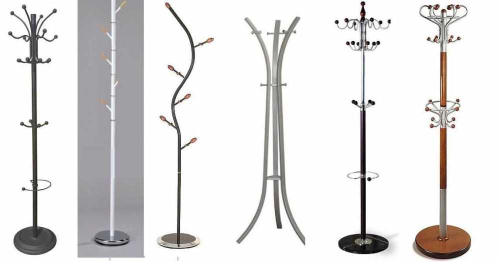 Напольные вешалки представляют собой устойчивую вертикальную конструкцию с крючками наверху. Такие часто встречаются в офисах и учреждениях
