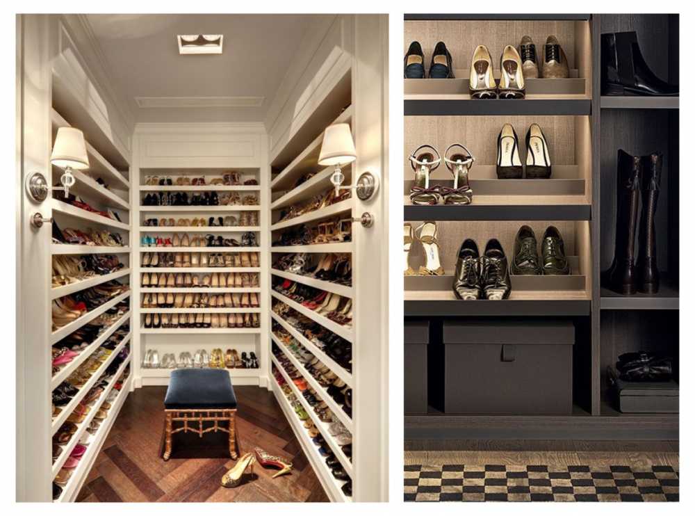 Они обязательно попадают в зону внимания любого человека – входящему в дом необходимо разуться. Бывают выдвижные или телескопические и обычно объединены по 2 или 3 штуки. Преимущество таких полок заключается в том, что данная конструкция позволяет установить одну полку на другую и получить удобное место для хранения обуви всей семьи, сэкономить пространство.