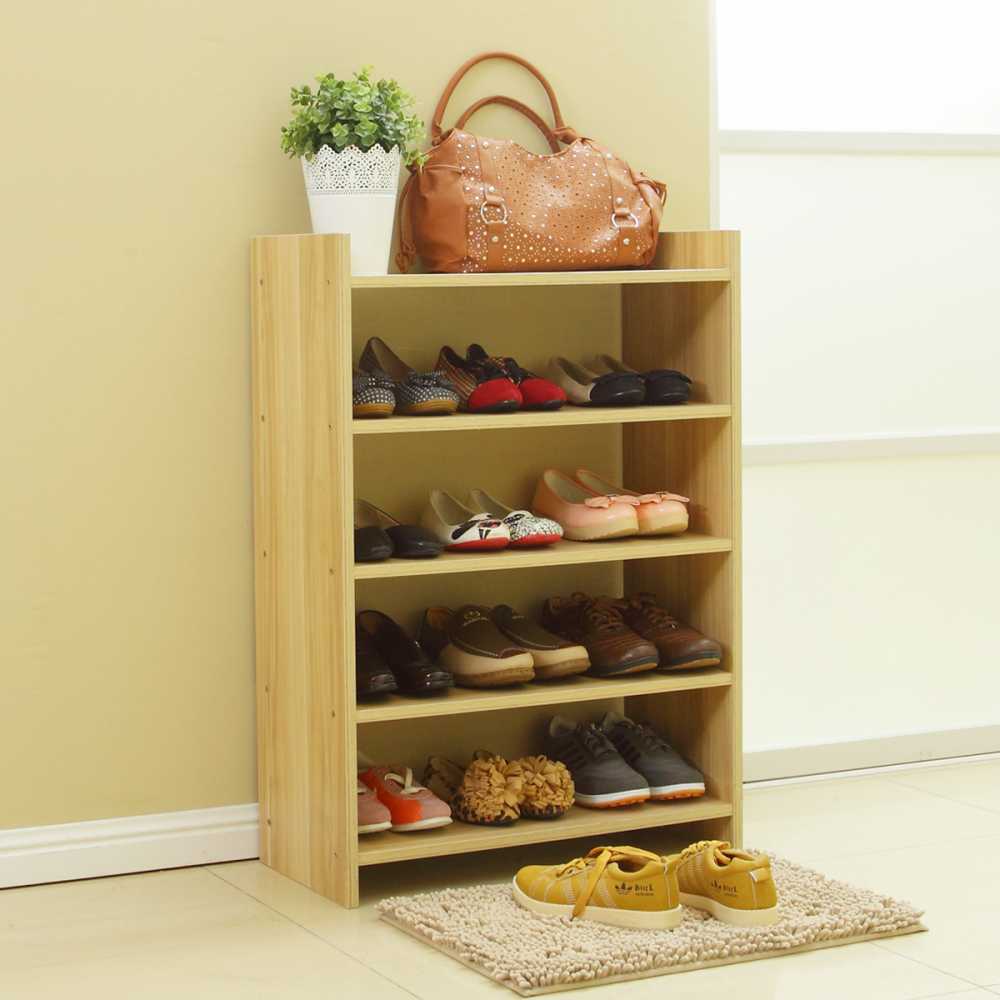 Полка для обуви из ДСП или МДФ — самый распространенный вид - Открытого типа собираются из: