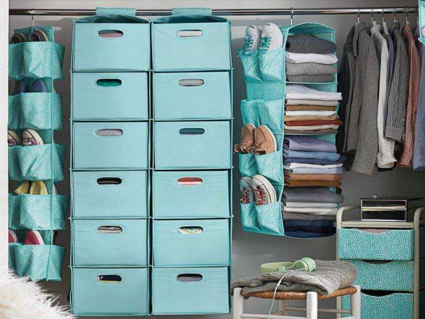 Очень популярны выдвижные полки и лотки для хранения вещей. Они удобны в эксплуатации, позволяют максимально компактно уложить и быстро найти нужную вещь, но такой вариант больше подходит для просторных помещений.