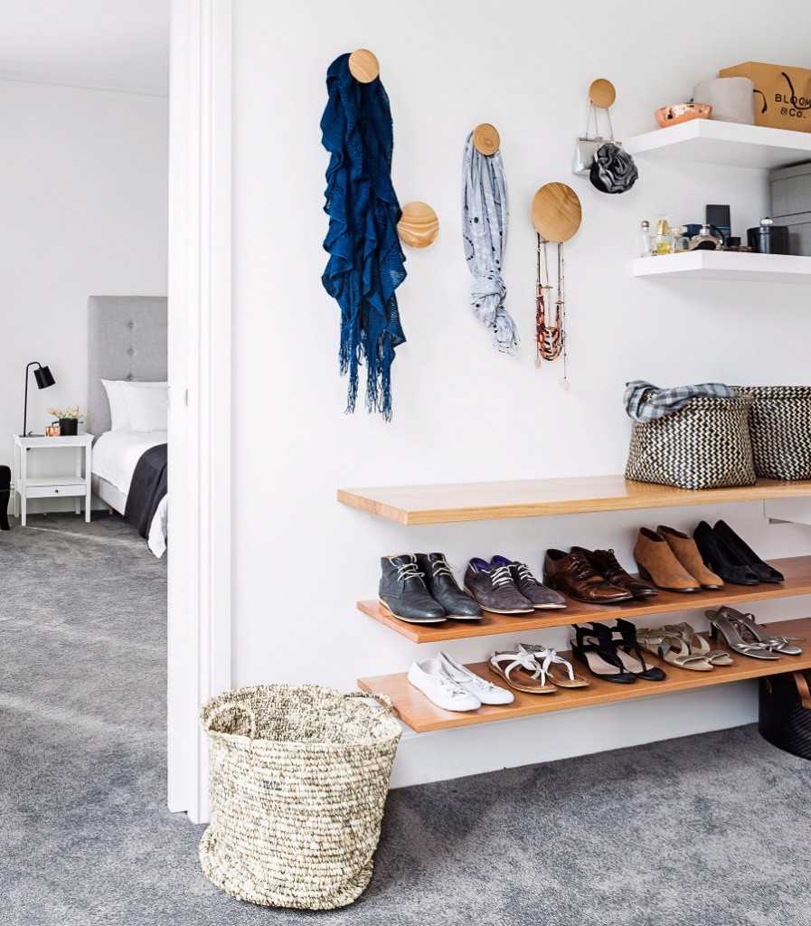 Если у вас есть место, просто добавьте несколько полок в свой шкаф, чтобы держать на них обувь. Добавление стеллажей на стену – отличный способ удержать все ваши ботинки вместе и иметь много места для других вещей. Это лучше всего работает, когда есть довольно большой гардероб, но вы можете поставить новые полки в любом месте, где есть пустая стена.