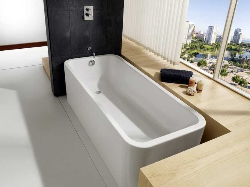 - Габариты и вес ванной. Если материал чугун, то установка должна быть не менее 15 см от пола, более легкие материалы могут иметь незначительные колебания.