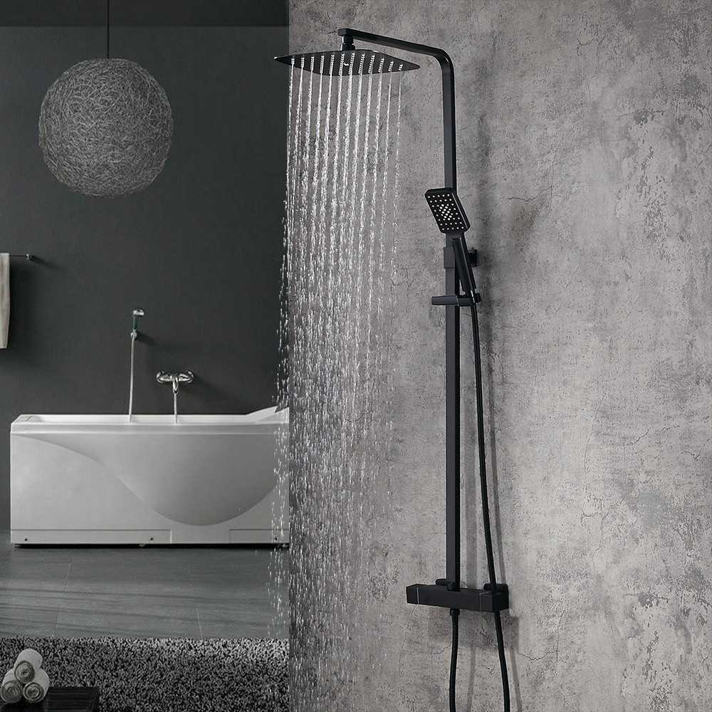 Наличие стойки освобождает от необходимости держать лейку руками. Нужно лишь удобно установить её на стойке и подать воду. Закрепляется конструкция на стене. Главное — подобрать необходимую длину штанги, чтобы всем было удобно пользоваться душем.