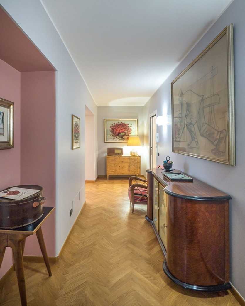7. Динамика. Динамичная композиция заставляет наш взгляд «попрыгать» — и не дает сконцентрироваться на недостатках помещения. А потому отлично подойдет для дизайна длинного коридорчика.