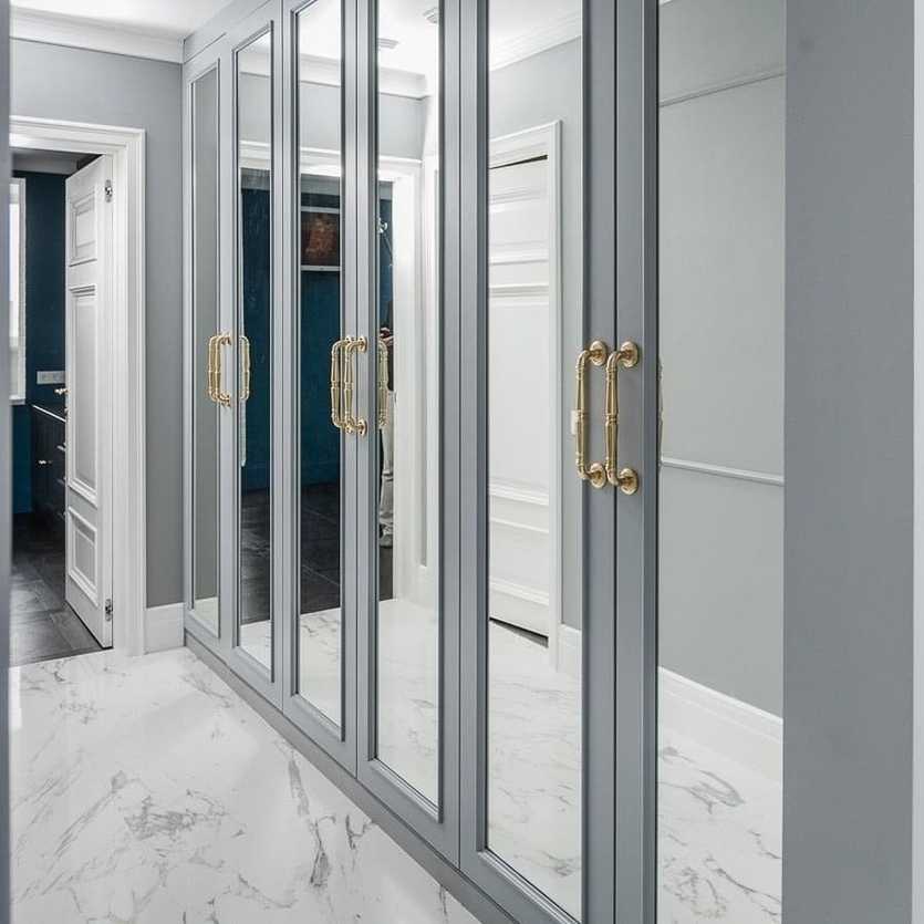 Зеркала – надежный помощник в деле расширения пространства, наполнения его светом. С их помощью визуально расширяется помещение узкого коридора. Зеркало закрывает чуть ли не половину длинной стены, украшает дверцы шкафа, который может быть и полностью зеркальным. Частично или полностью зеркальный потолок также приемлем, особенно если он не слишком высокий. Если из дверных проемов других комнат на зеркальные поверхности падает солнечный свет, узкая прихожая станет светлой и просторной. Зеркало, занимающее полностью всю узкую стену, делает переднюю еще длиннее.