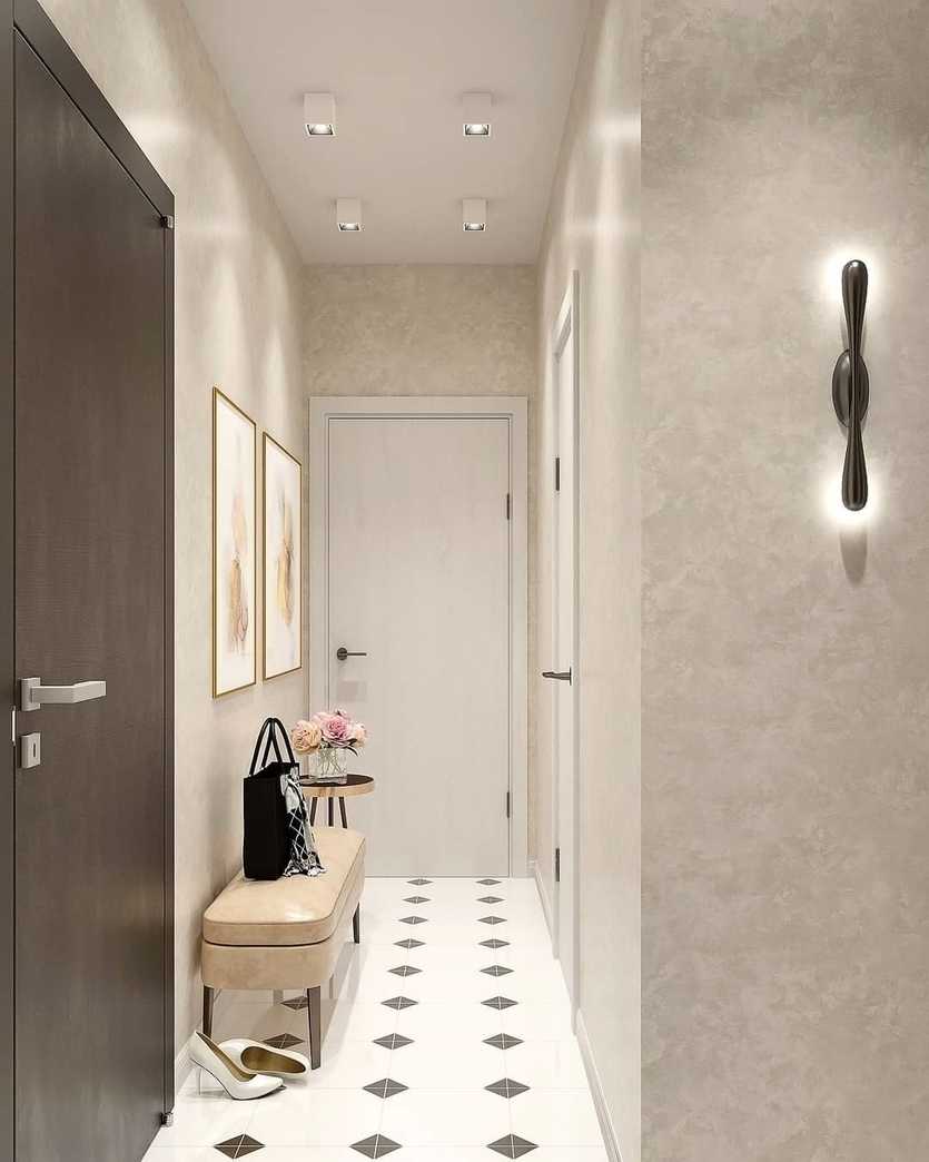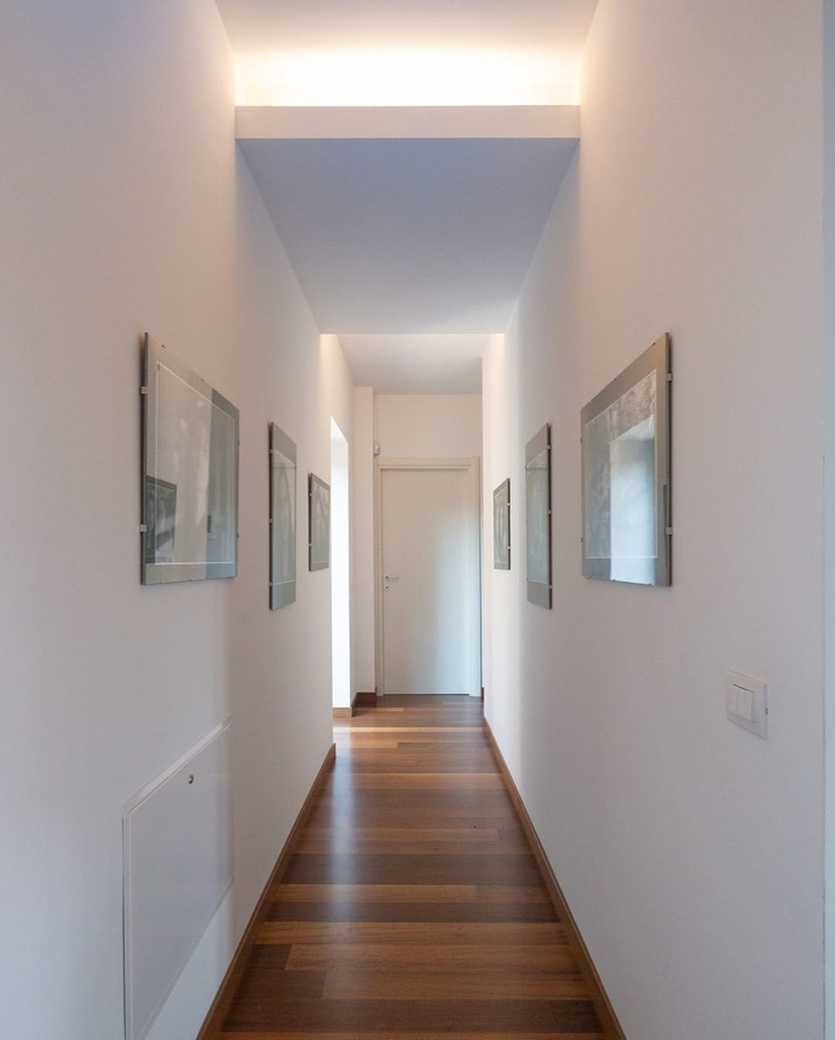 Освещение длинного, узкого коридора также способно изменить форму передней: