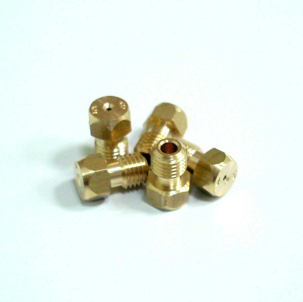 Жиклёры очень похожи на обычные болты: шестигранная головка и резьба. Среди прочих элемент выделяет небольшое отверстие в центральной части. Диаметр сопла рассчитывается исходя из типа газа, мощности плиты и особенностей системы подачи топлива.