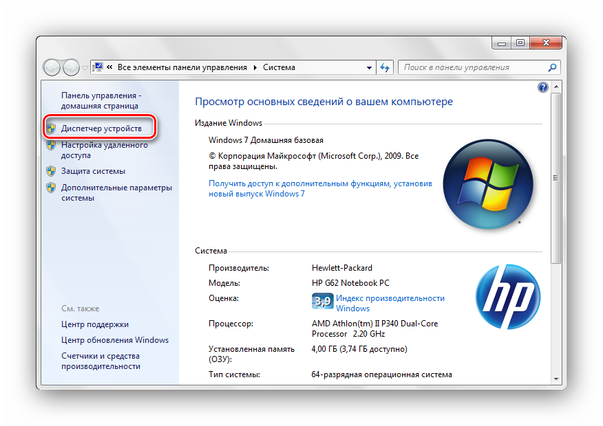 Подробнее: Как открыть «Диспетчер устройств» в Windows 7