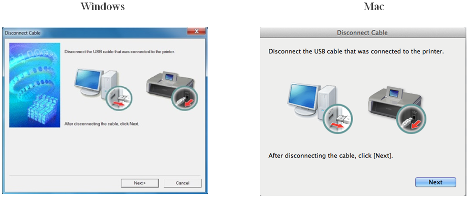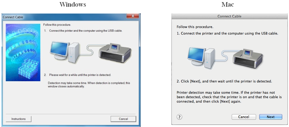 7. После того как отобразится следующий экран, подключите принтер к компьютеру с помощью кабеля USB, входящего в комплект поставки. Данный кабель имеет символ на разъеме.
