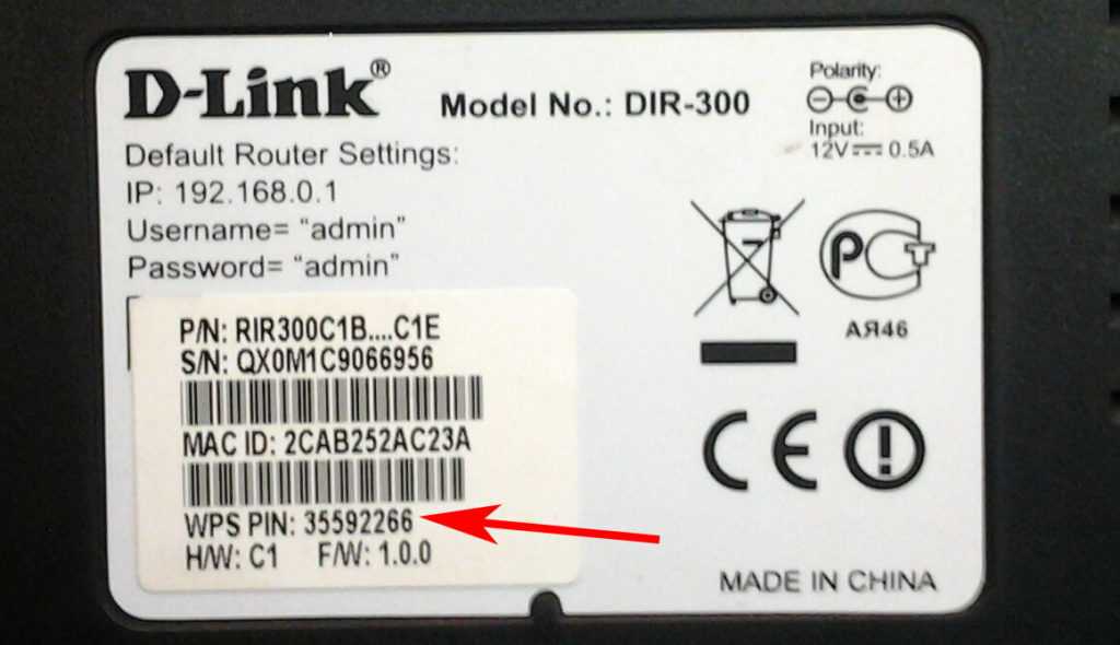 Перевернув маршрутизатор, вы увидите наклейку, на ней будет значок WPS, а напротив написан PIN код. В дальнейшем он нам будет необходим для подключения устройств.