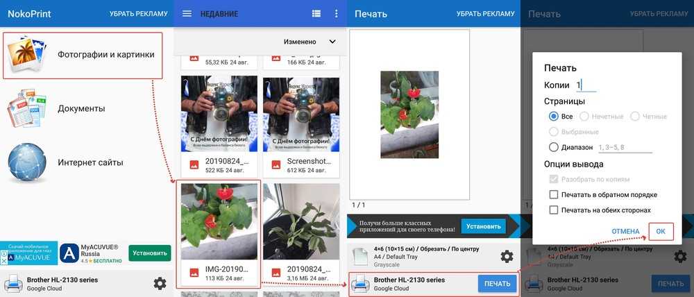 Чтобы распечатать картинку из памяти телефона, проделайте следующее: