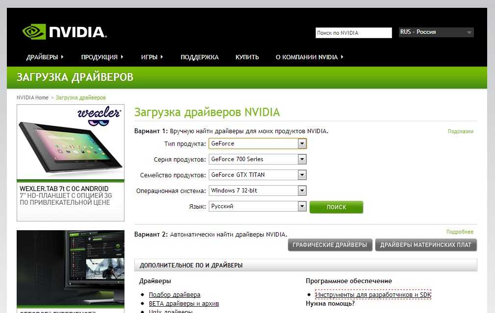 Загрузка драйверов «Nvidia»