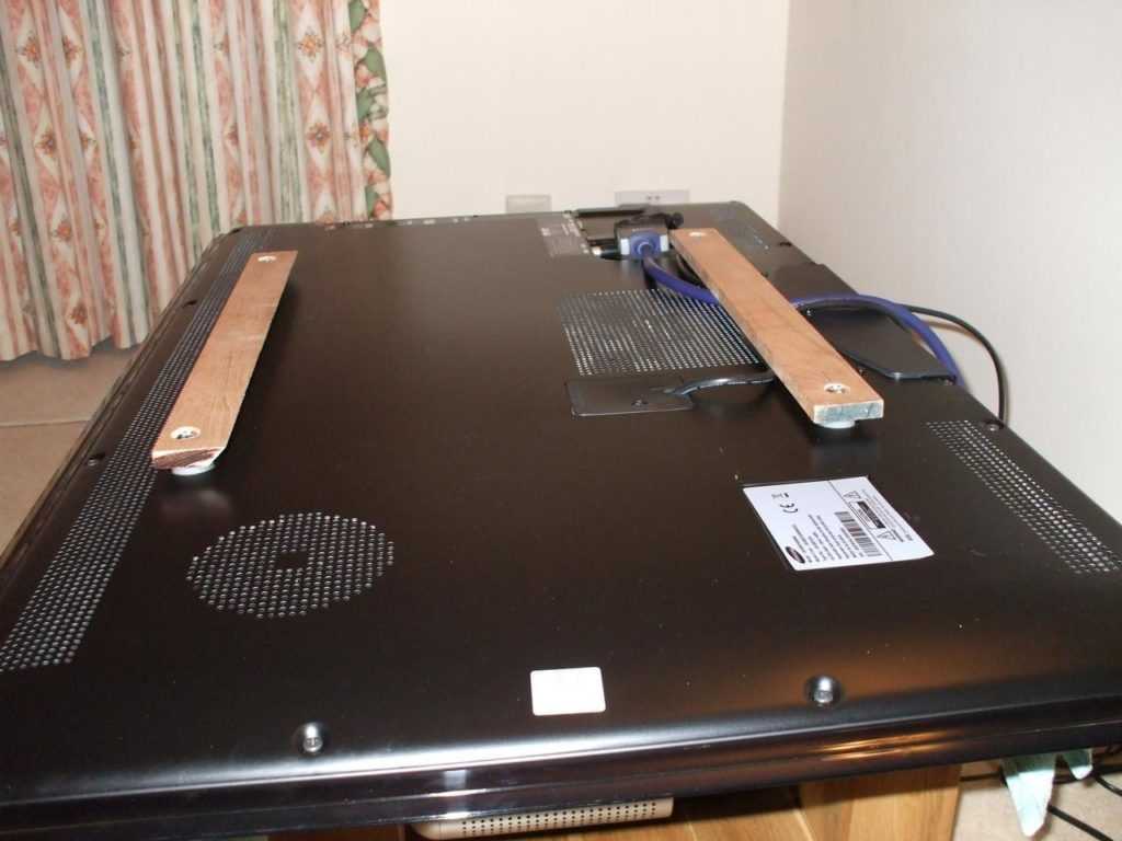 - Самостоятельно можно установить только небольшой телевизор. Допустимый размер (и вес) зависит от прочности изготовленных вами креплений, но обычно диагональ составляет менее 24 дюймов.