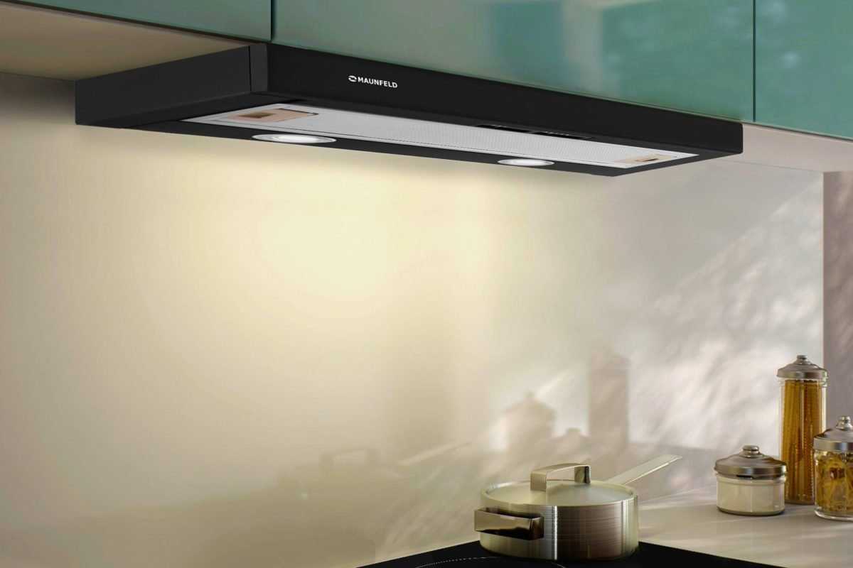 Плоские — это самая маленькая по мощности система. Занимает очень мало места — можно прикрепить над электроплитой прямо под кухонный шкаф. Прекрасно подойдет для небольшой кухни. Лучшие устройства в данной категории имеют выдвижную панель, которая увеличивает рабочую площадь забора отработанных воздушных масс, что делает ее работу более эффективной, при этом не отнимая дополнительного пространства.