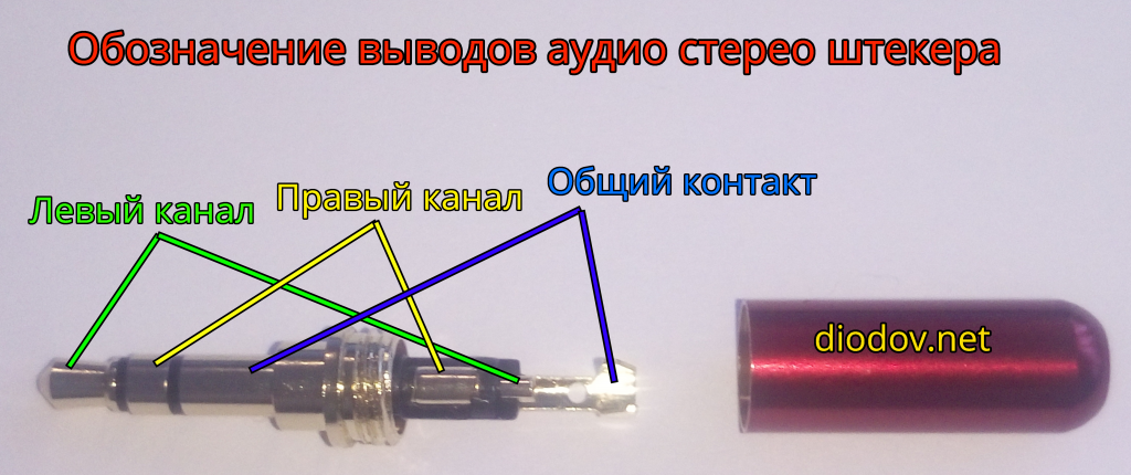 Один пин – это левый канал. Второй пин – правый канал. Третий контакт – это общий провод для двух каналов.