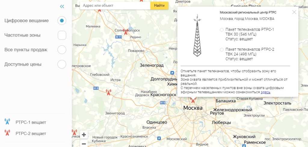 Рекомендуем: зона покрытия цифрового ТВ и расположение вышек.