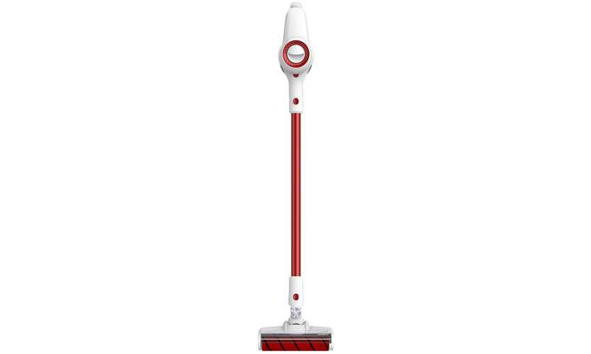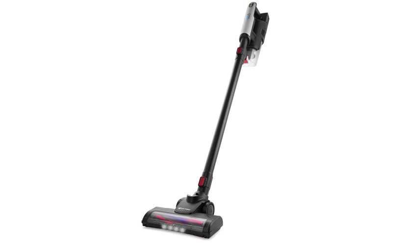 Вертикальный беспроводной пылесос очень компактный. При отсоединении составной трубы становится ручной моделью, которая оптимальна для очистки мебели или салона машины. В качестве пылесборника вместо мешка у него циклонный фильтр на 0,6 л. Процесс фильтрации оптимизирует НЕРА фильтр. В комплект входит электрическая щётка с подсветкой, у которой щетинки расположены от края до края в четыре ряда, поэтому подбирается мусор на всём протяжении. Она также вращается в двух плоскостях. На ручке есть индикаторы уровня заряда и скорости работы. Работает от аккумулятора Li-Ion ёмкостью 2,2 мА-ч непрерывно в течение 45 минут. На его зарядку необходимо 240 минут. Сила всасывания — 60 Вт. Потребляет 120 Вт.