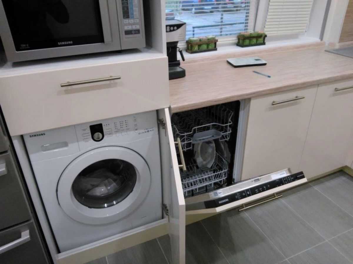Если вы, взвесив все, все-таки приняли решение установить машину на кухне, тогда ознакомьтесь с идеями установки.