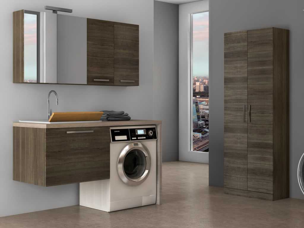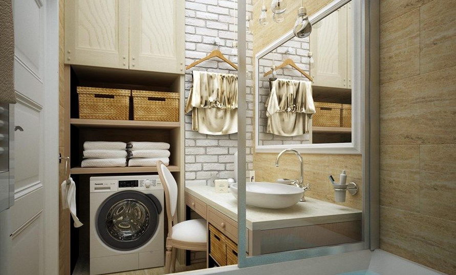 Каждую хозяйку интересует вопрос практичного, компактного размещения бытовой техники. Но нельзя забывать о деталях – куда-то нужно складывать грязное белье, ставить моющие средства, хранить банные и туалетные принадлежности. Такие вещи принято оставлять в ванной, поэтому ниши для белья оборудуют в этой комнате. Чтобы компактно разместить и стиральную машину, и функциональные элементы наполнения шкафа, можно изготовить конструкцию следующим образом: