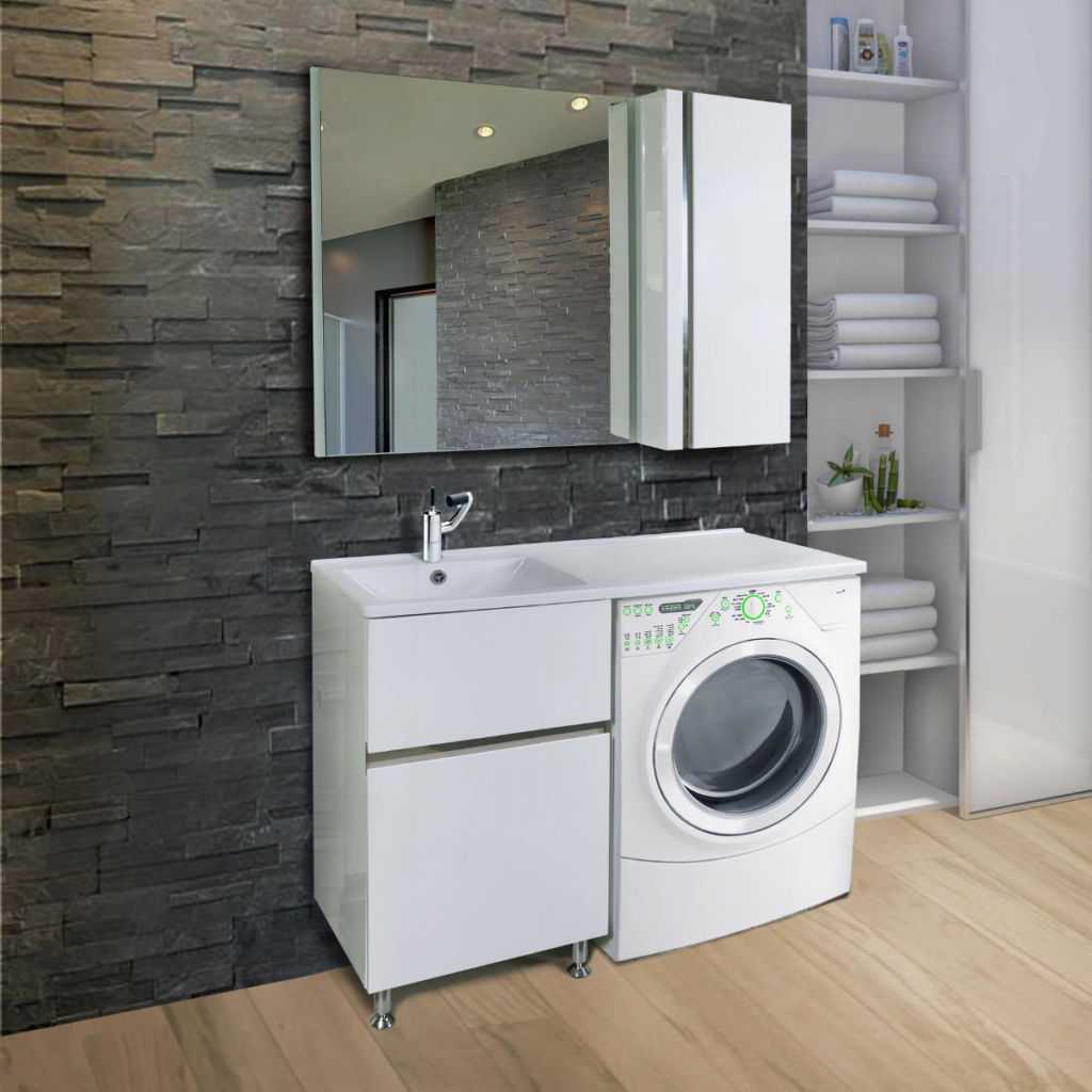 Тщательно подбирайте размеры техники, раковины с тумбой, подводов и слива.