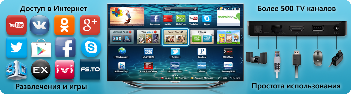 Ведь раньше пользователь мог выбрать только тот контент, который транслировался по определённым каналам в конкретное время. Теперь же, благодаря Smart TV, каждый имеет возможность открыть большое количество приложений и выбрать для просмотра именно то, что представляет интерес на данный момент. Заплатив небольшие деньги можно посмотреть хит, который ещё никто не видел. Хочется вашему ребёнку конкретных мультиков — пожалуйста.