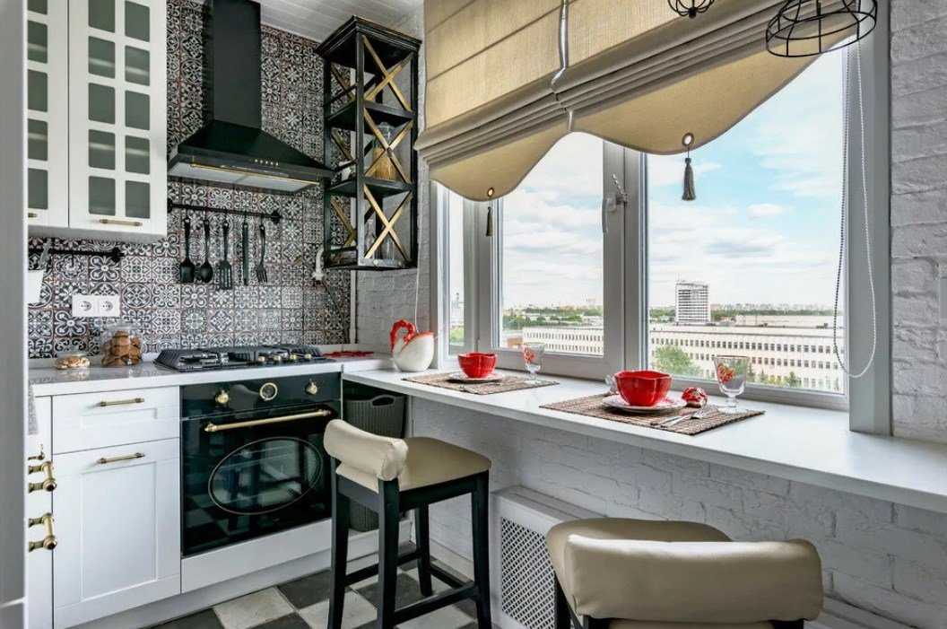 Обладатели маленьких кухонь умеют ценить каждый см пространства. Им ли не знать, как тяжело разместить на мизерной площади полноценный гарнитур, втиснуть необходимую технику и организовать место для приема пищи. Очень часто приходится отказываться от последнего в пользу холодильника или наоборот, размещать рефрижератор в коридоре или жилой комнате. И это, не говоря о посудомоечной и стиральной машине. А ведь этого можно избежать, если подойти к обустройству кухни творчески и задействовать место у окна. Широкий подоконник – отличный способ расширить пространство, организовать дополнительное рабочее место, отдельную зону для приема пищи и хранения утвари.
