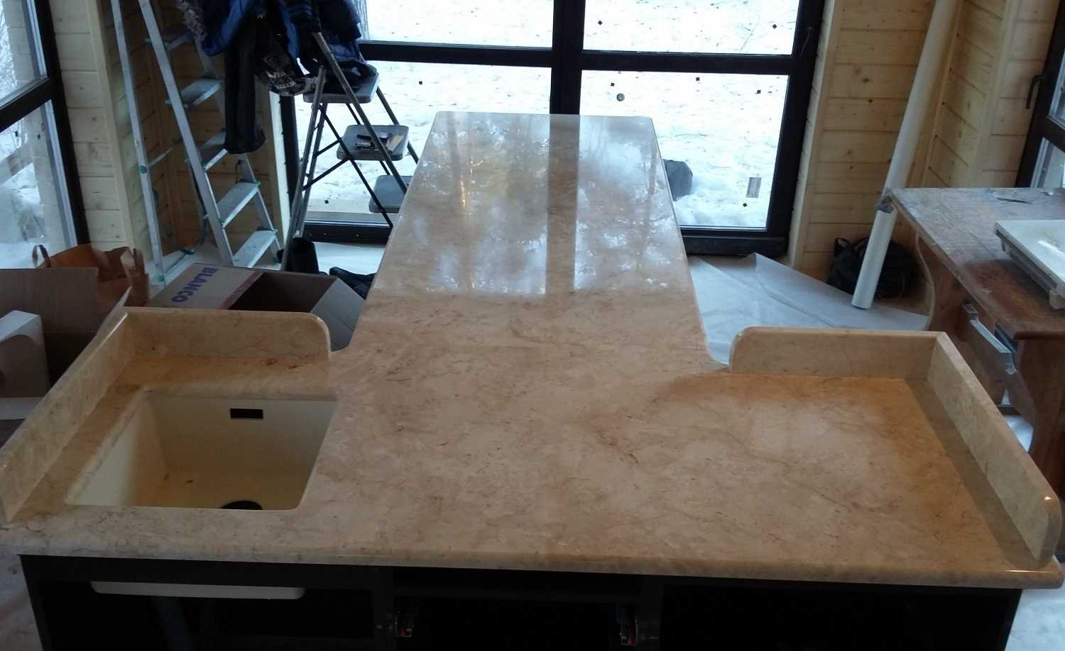Столешница из натурального камня довольно тяжелая, поэтому нуждается в хорошей опоре.