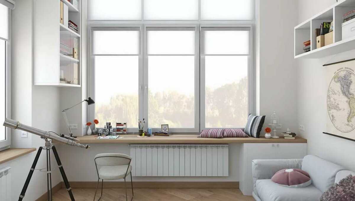 Впрочем, некоторые не торопятся с установкой данной конструкции, ведь, как правило, она закрывает батареи, расположенные именно под окном. Доля правды здесь действительно есть, однако, при условии нескольких специальных отверстий в столешнице свободная циркуляция теплого воздуха будет сохранена. Кроме того, такое расположение позволит комфортно заниматься или работать, ведь тепло у ног – это всегда хорошо и уютно.