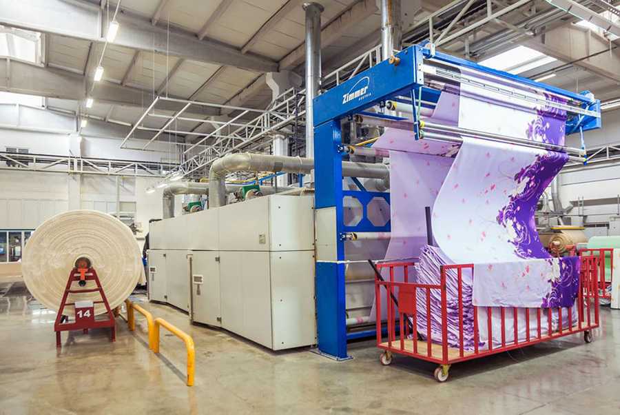 Белые рулоны прогоняют через печатные станки, на полотне возникают четкие принты, узоры. Набивные краски не выгорают, не блекнут после стирки.