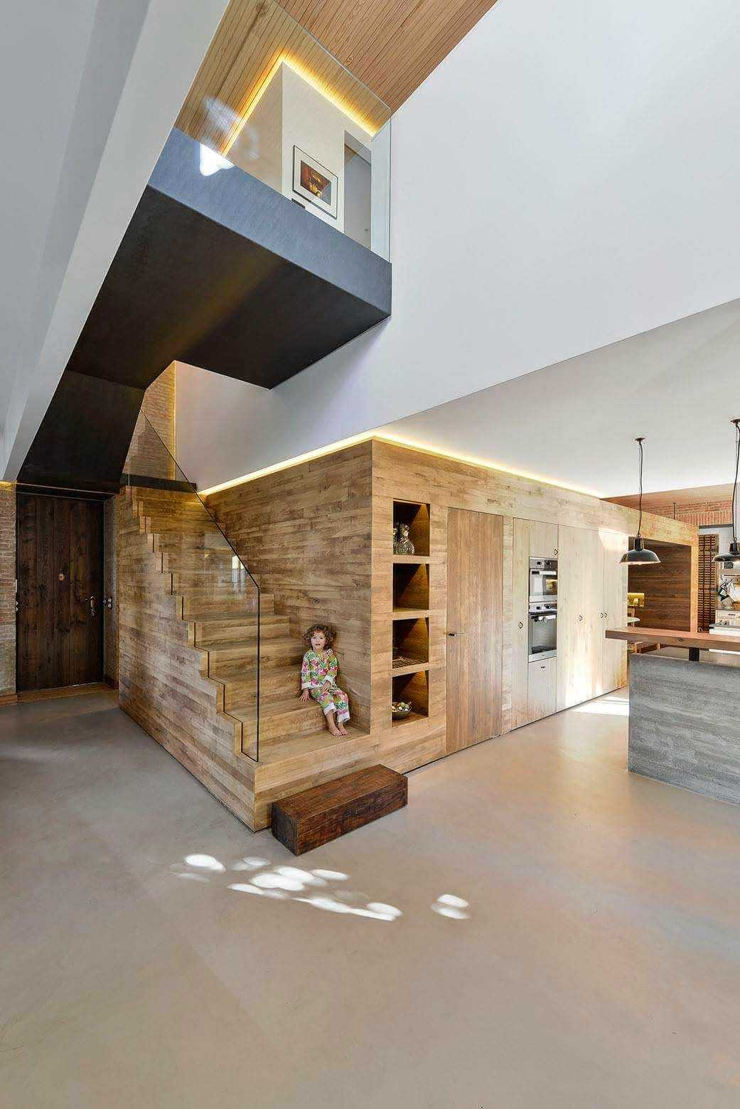 В этой части дома антресоль встречается редко. Полка под потолком пригодится для хранения книг, документов или другой печатной продукции